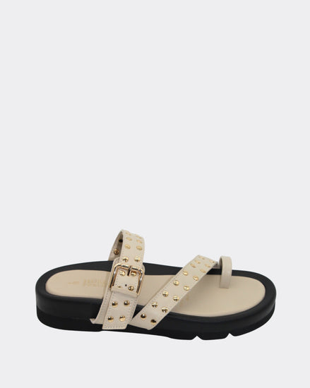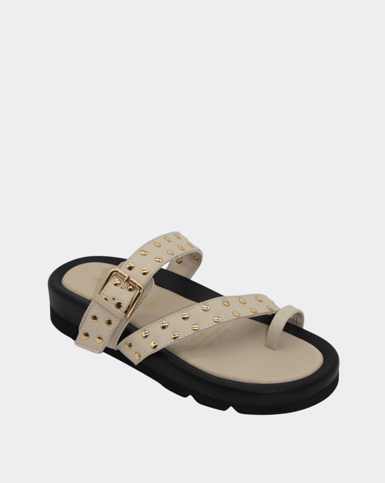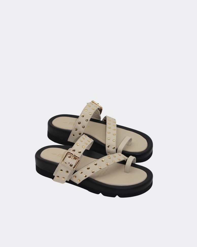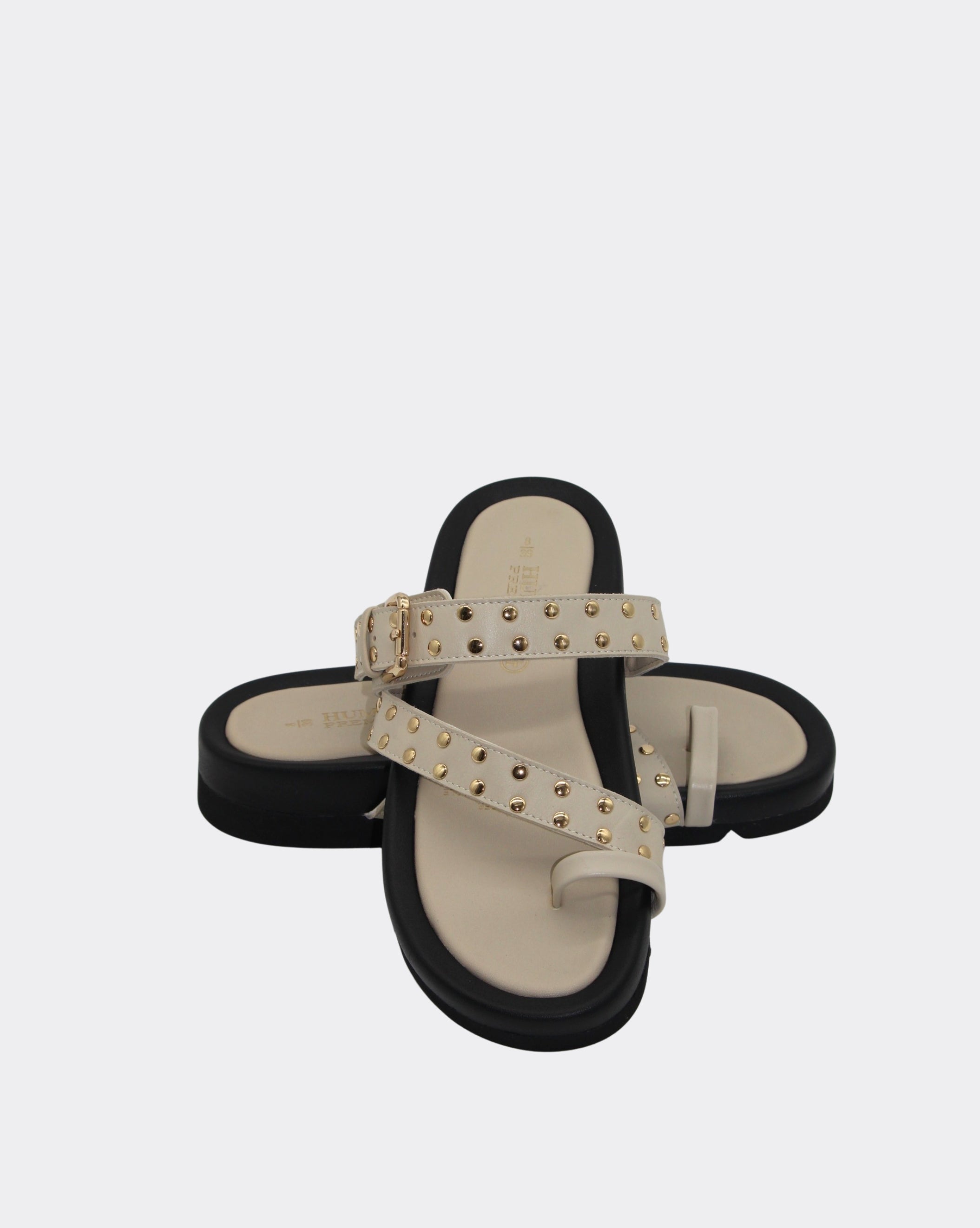 Toe slide with stud featuring on upper straps.