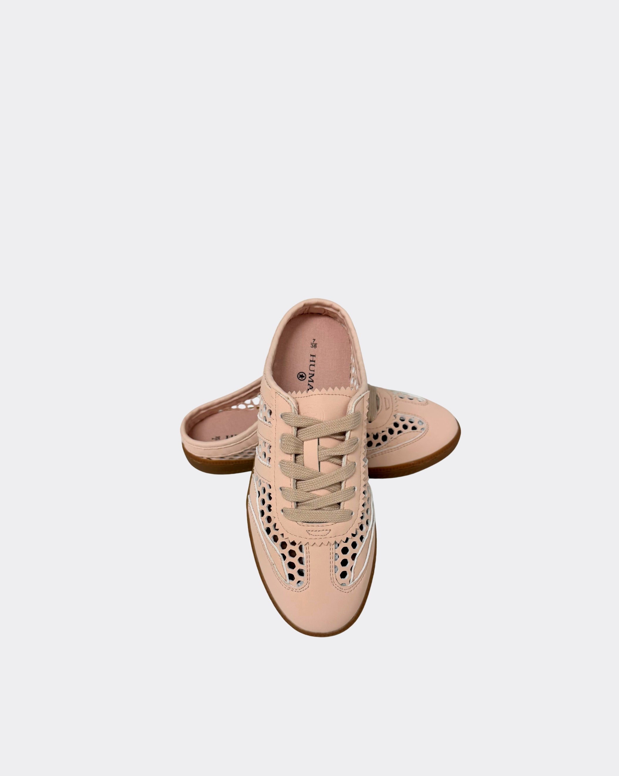 Elevate your casual style with this unique, laser-cut backless sneaker