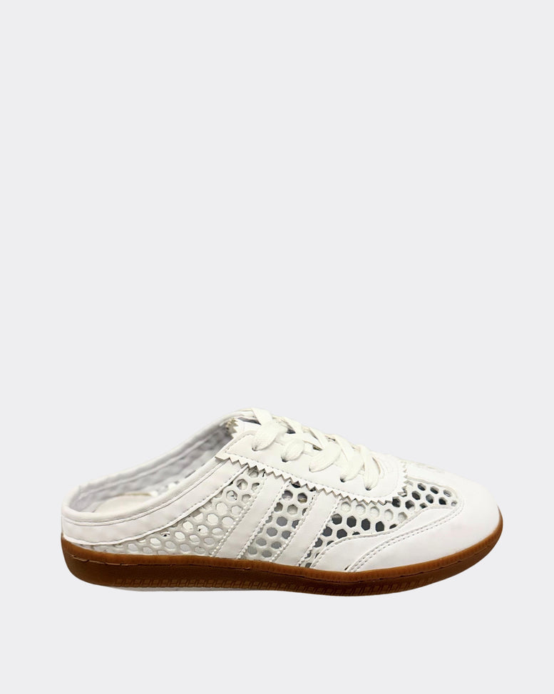 Elevate your casual style with this unique, laser-cut backless sneaker