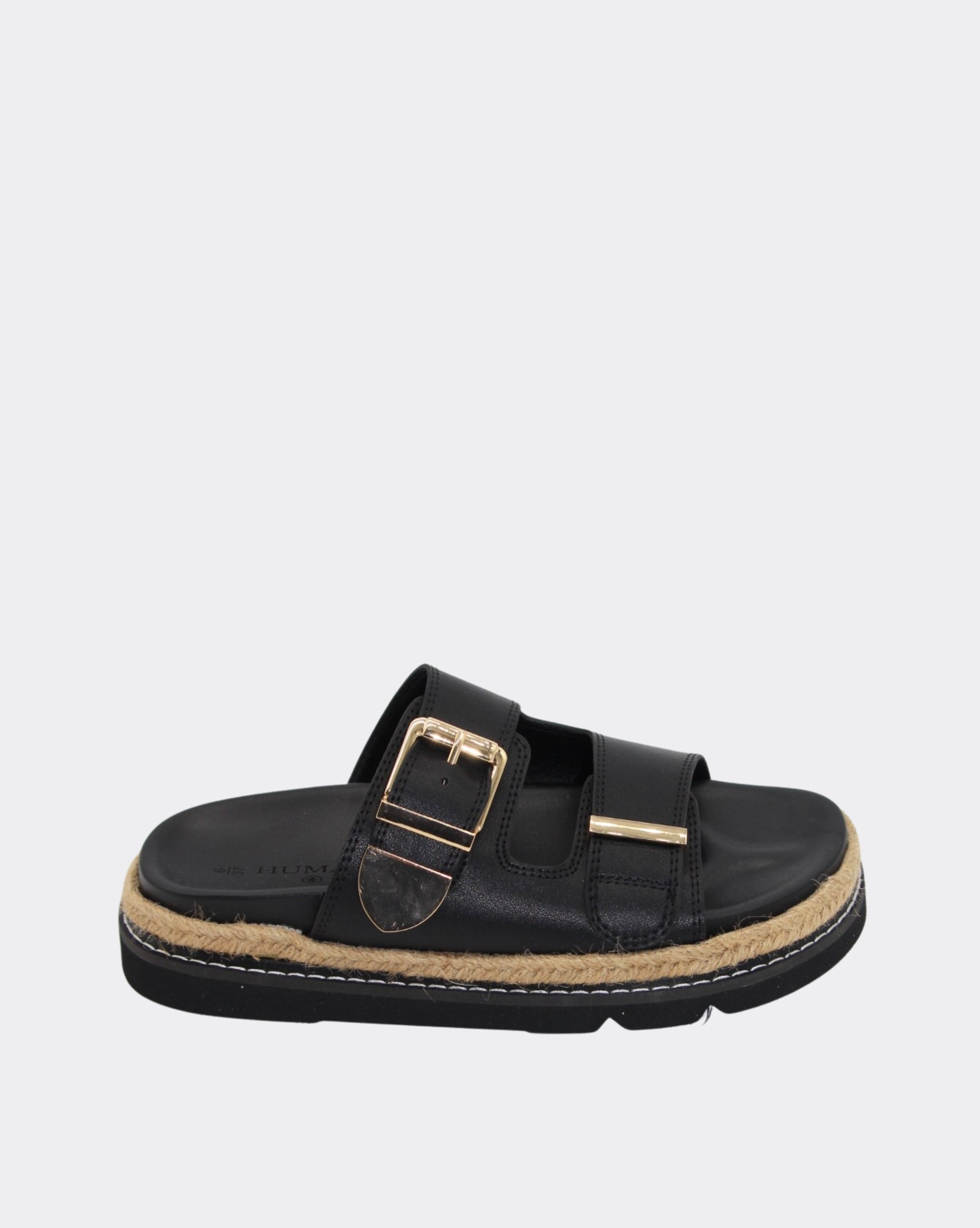 Milani platform slide keeps you on-trend from morning to night Non leather upper  Padded footbed Adjustable buckle feature with gold tip 4.5cm footbed + sole , featuring rope midsole Designed...